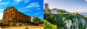 Agrigento: «La Ciudad más bella de los mortales», donde se pueden admirar diez templos dóricos que se erigen en el valle. Visita de «la Valle dei Templi» y salida hacia Trapani con posibilidad de visitar Erice en funicular, uno de los pocos pueblos típicamente medievales de Sicilia, hoy conocida como la «Ciudad de la Ciencia».